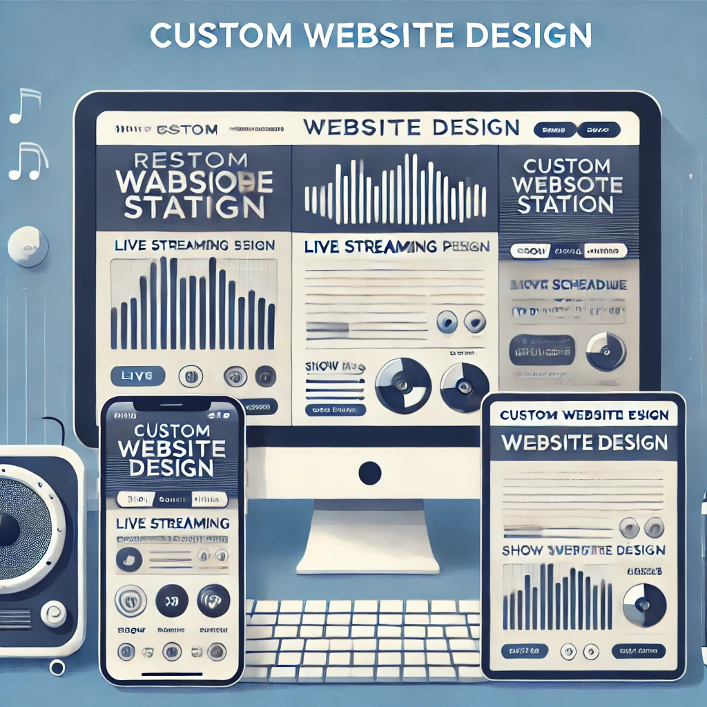 A well-designed website is the digital heartbeat of your radio station, serving as the central hub for listeners to tune in, learn more about your shows, and interact with your brand. We specialize in creating responsive, visually appealing websites that look stunning on any device—desktop, tablet, or smartphone. Our designs are tailored to reflect the unique personality of your station while incorporating essential features like live streaming, show schedules, and social media integration. With a professional website, you can attract more listeners, keep them engaged, and provide a seamless experience that keeps them coming back.